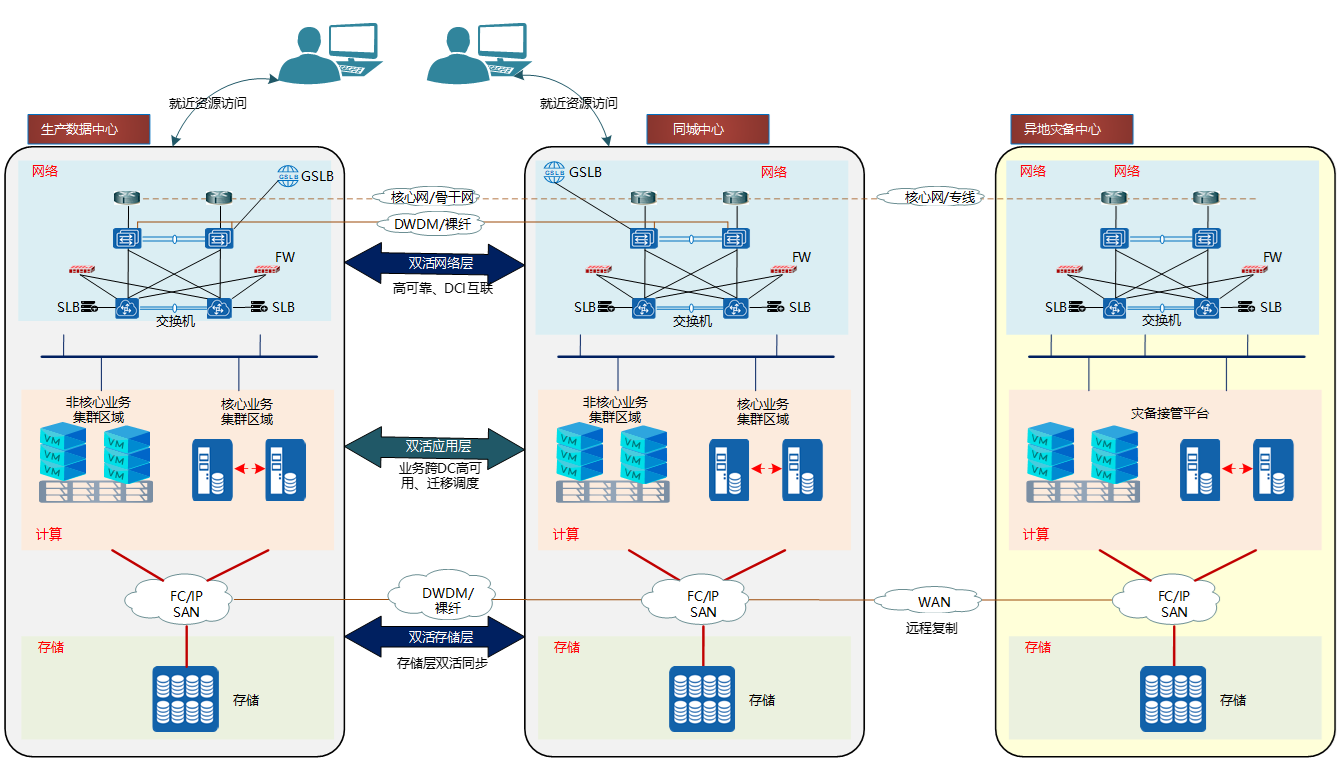 - 保障业务的陆续在性,为用户给予就近资源访问及故障后跨数据中心的资源调度